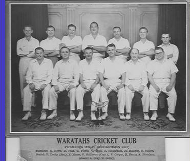 Most memorable moment in cricket: 1952-53 A grade Final, beating Easts 2 outright after our worst A/1st grade total in the sixty year history of the club. Beat the very strong Uralla in the last round to just scrape into the semis and then Easts 1 in the Semi. Played one player short on the first day after a mix up with team sheets and made 163 in the sunshine, Ross Ridley 59. Easts 0-57 at stumps after four dropped catches. Didn't play the second day for two weeks because of the Armidale Show and then after four days of heavy rain. Wicket now a sticky and impossible to bat on. Easts all out for 95, Don Paul 6-24. Batting a second time, Waratahs still one short and Ridley now out injured, all out for 21. Easts needing 90 don't make it to halfway, all out for 43, Don Paul 7-20. Waratahs win their first premiership in only their third season.