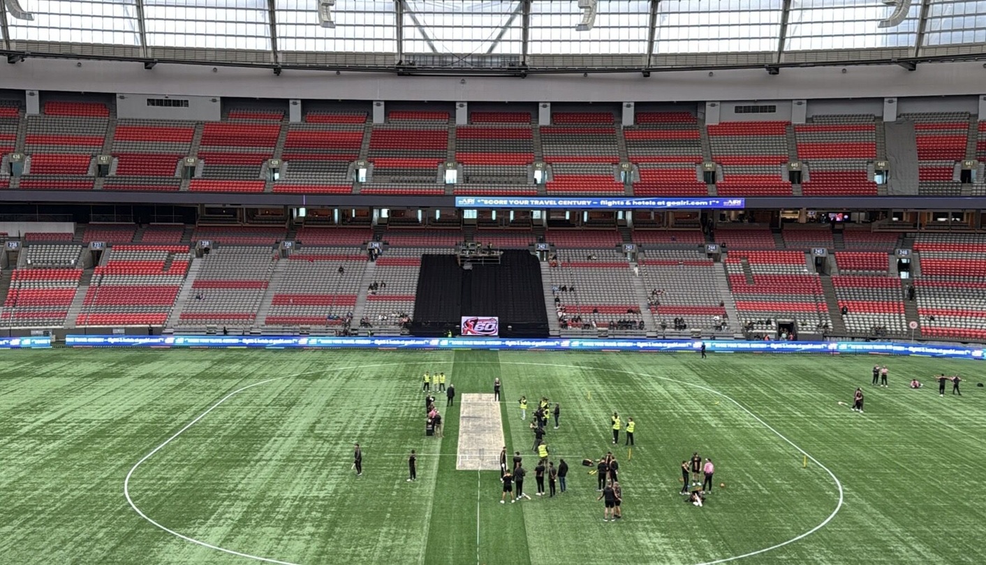 World’s First-Ever Drop-In H3 Hybrid Cricket Wicket Installed at Canada Super60 Event in BC Place.