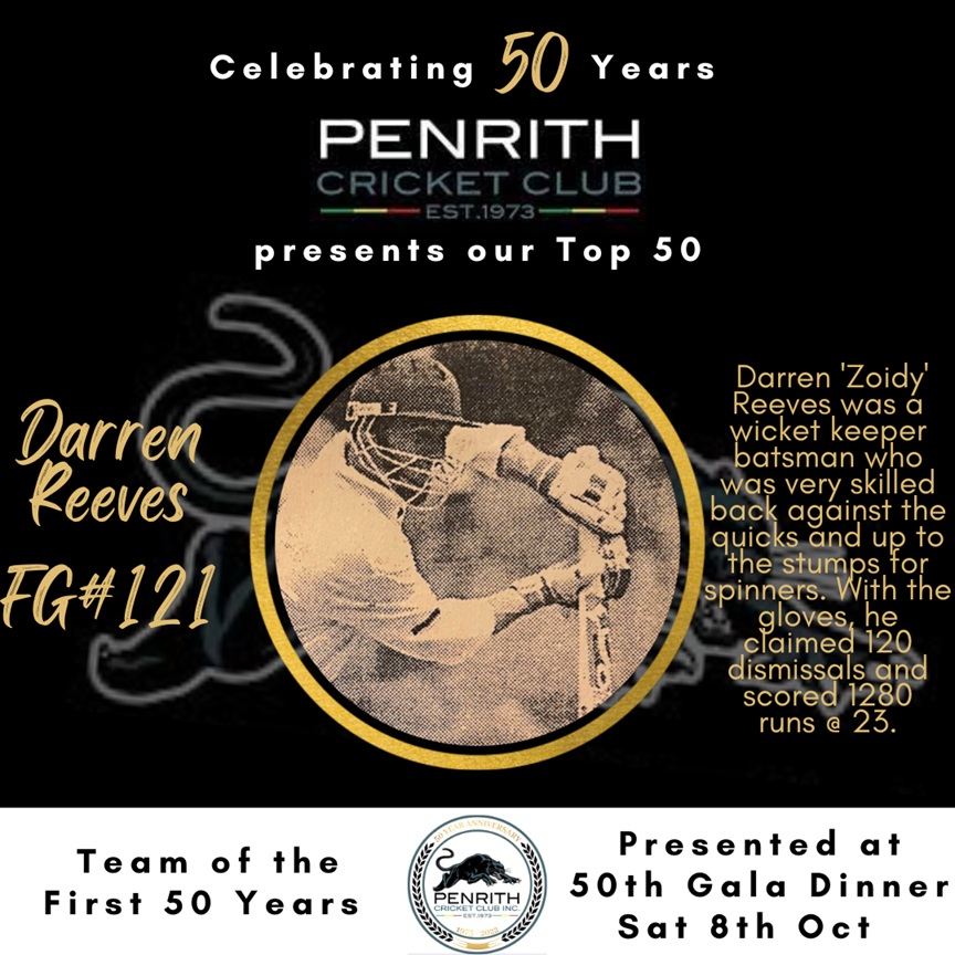 Darren 'Zoidy' Reeves, who grew up in Blackheath, joined Penrith in the 1992/93 season, where he would play with the club until the end of the 1997/98 season.
